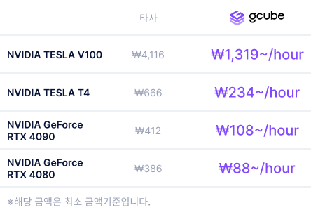 gcube는 Global의 GPU네트워킹을 통해 클라우드 컴퓨팅 성능을 강력하게 유지하면서, 경제적인 가격에 공급하는 GPU공유경제 서비스입니다.