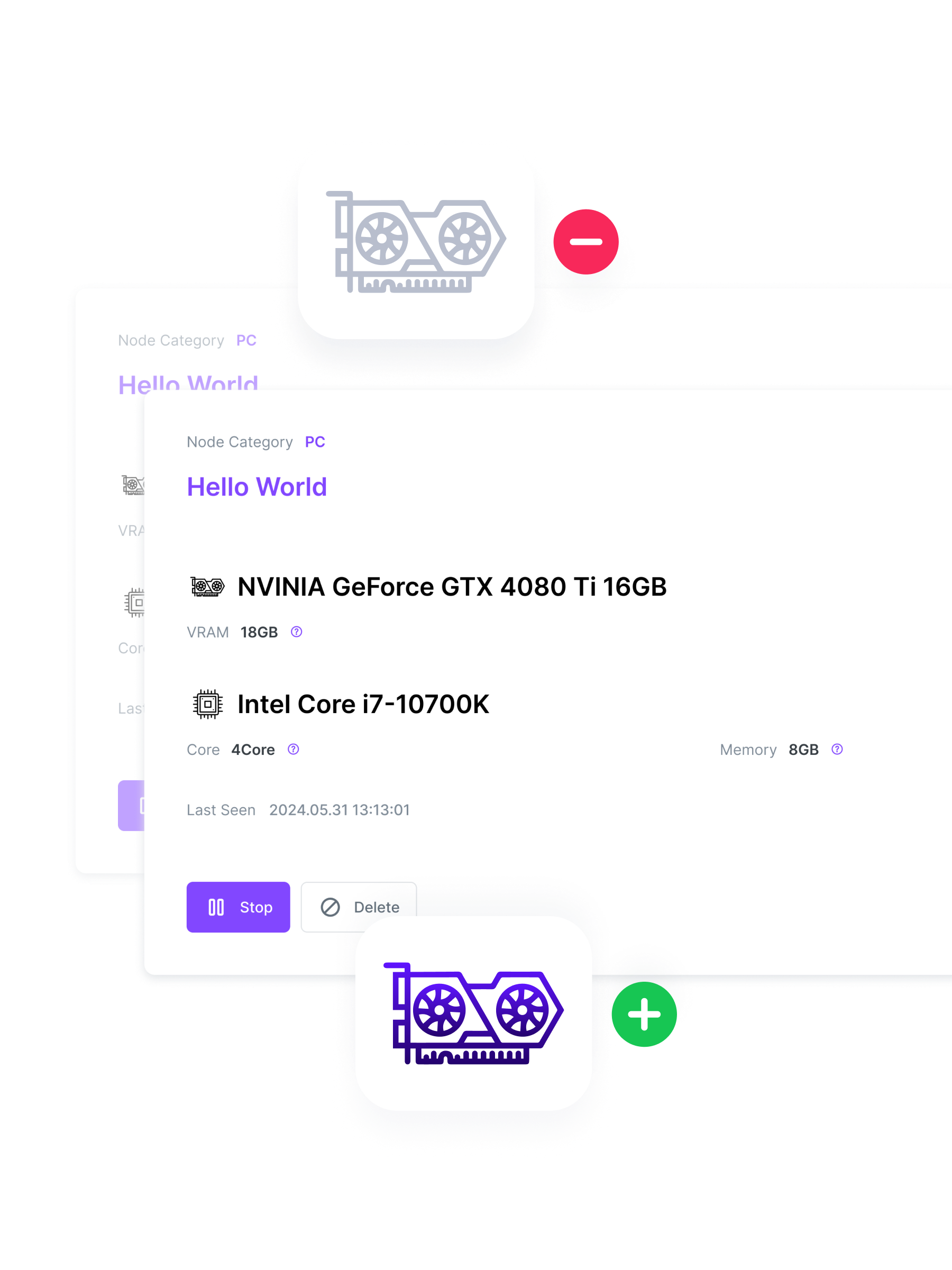 클라우드 네이티브 기술을 이용하여 CSP의 GPU와 PC의 GPU를 결합하여 동시접속이 많은 서비스등 서비스의 특성에 맞게 맞춤형으로 안정적인 서비스를 제공할수 있습니다.Everyone GPU